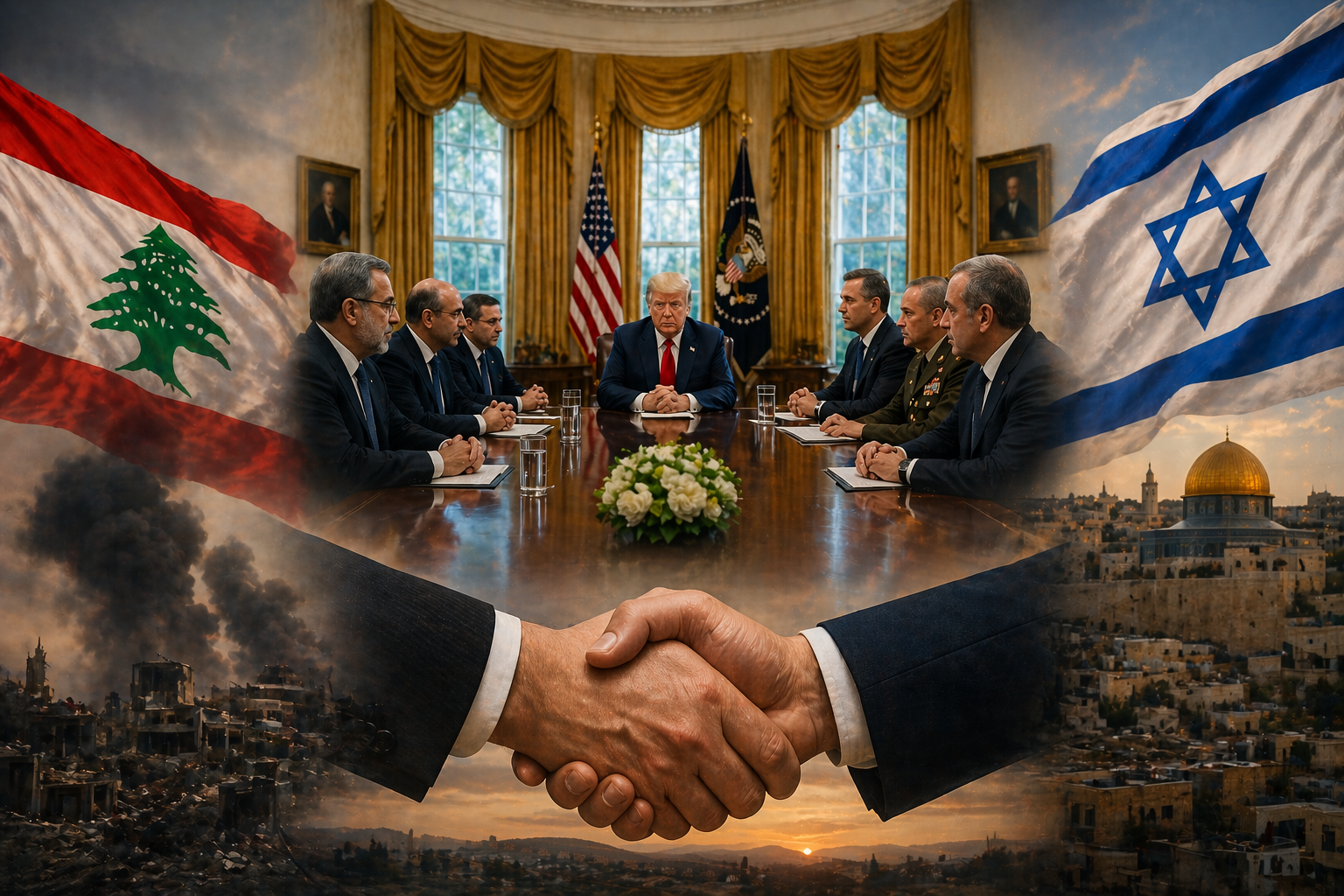 កិច្ចពិភាក្សានេះត្រូវបានដឹកនាំដោយសហរដ្ឋអាមេរិក នៅក្នុងបន្ទប់ Oval Office ដោយមានការចូលរួមពីអគ្គរដ្ឋទូតអ៊ីស្រាអែលប្រចាំវ៉ាស៊ីនតោន លោក Yechiel Leiter និងអគ្គរដ្ឋទូតលីបង់ លោកស្រី Nada Moawad។